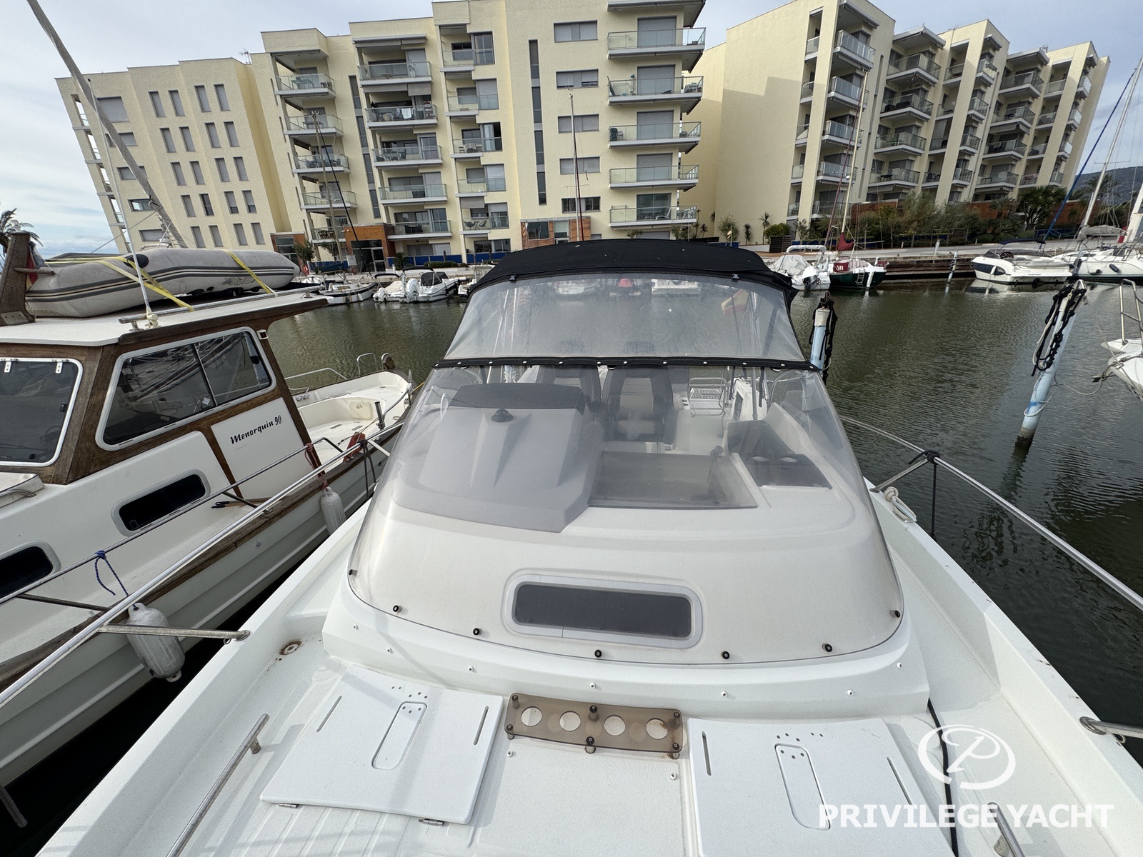 Con una eslora de 7,96 m y una manga de 2,94 m, ofrece un espacio bien aprovechado y gran estabilidad en navegación. Equipada con dos motores Yamaha F200 de 200 CV cada uno, proporciona un rendimiento potente y seguro, ideal para quienes buscan sensaciones fuertes sin renunciar al confort.