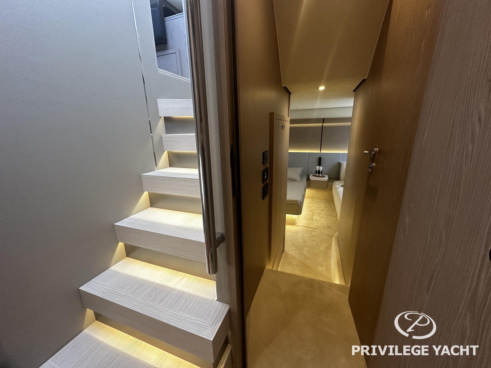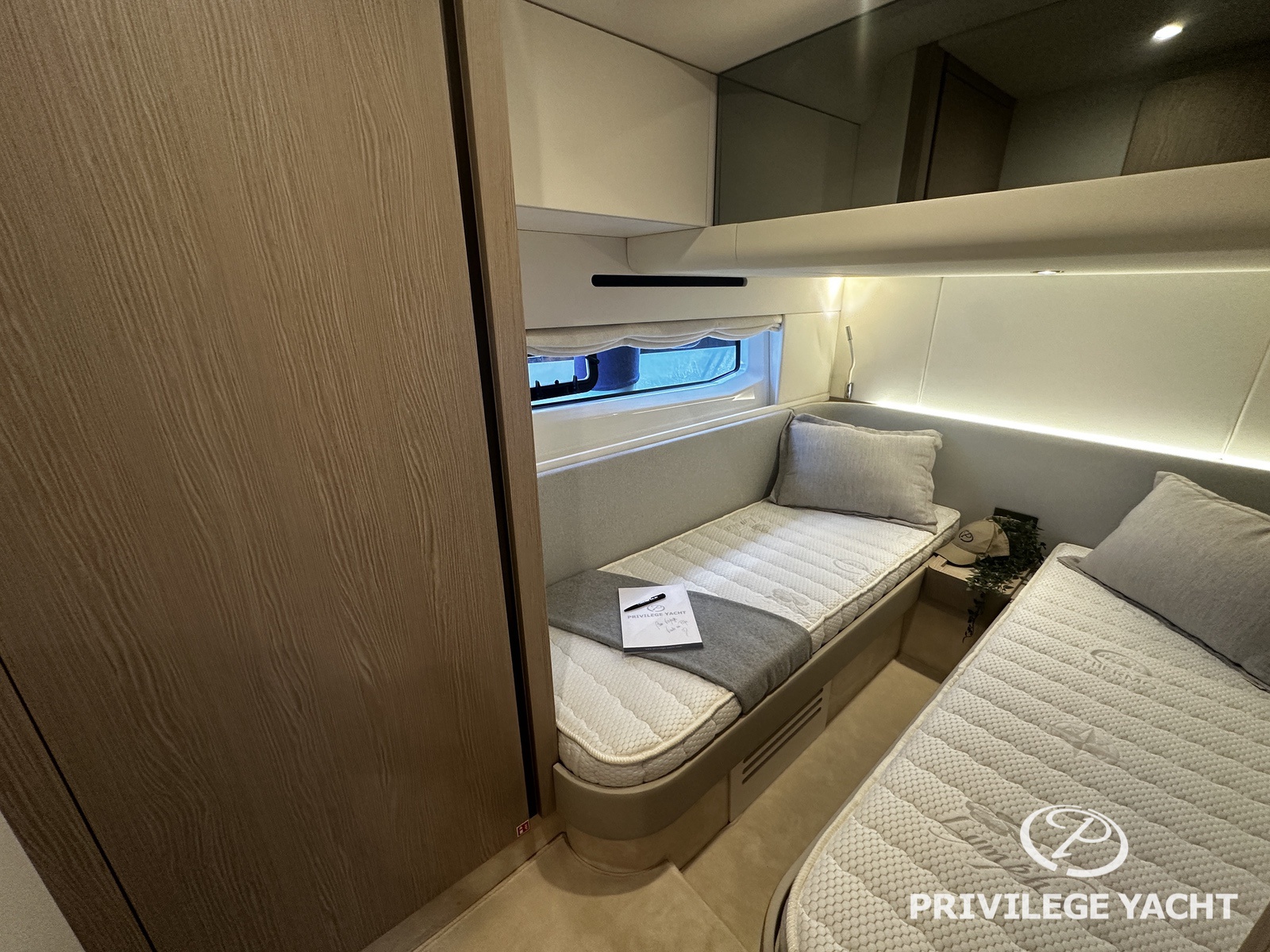 L'Azimut 53 est conçu pour accueillir jusqu'à six membres de la famille et amis pendant la nuit dans un confort absolu, avec de nombreux espaces de rangement, des fauteuils et canapés profonds et des appareils de cuisine haut de gamme, étudiés dans les moindres détails pour assurer une expérience absolument relaxante. La suite principale occupe toute la largeur du navire et dispose d'une salle d'eau privée et la suite VIP à l'avant dispose d'un accès direct à la salle d'eau de jour pendant la nuit.