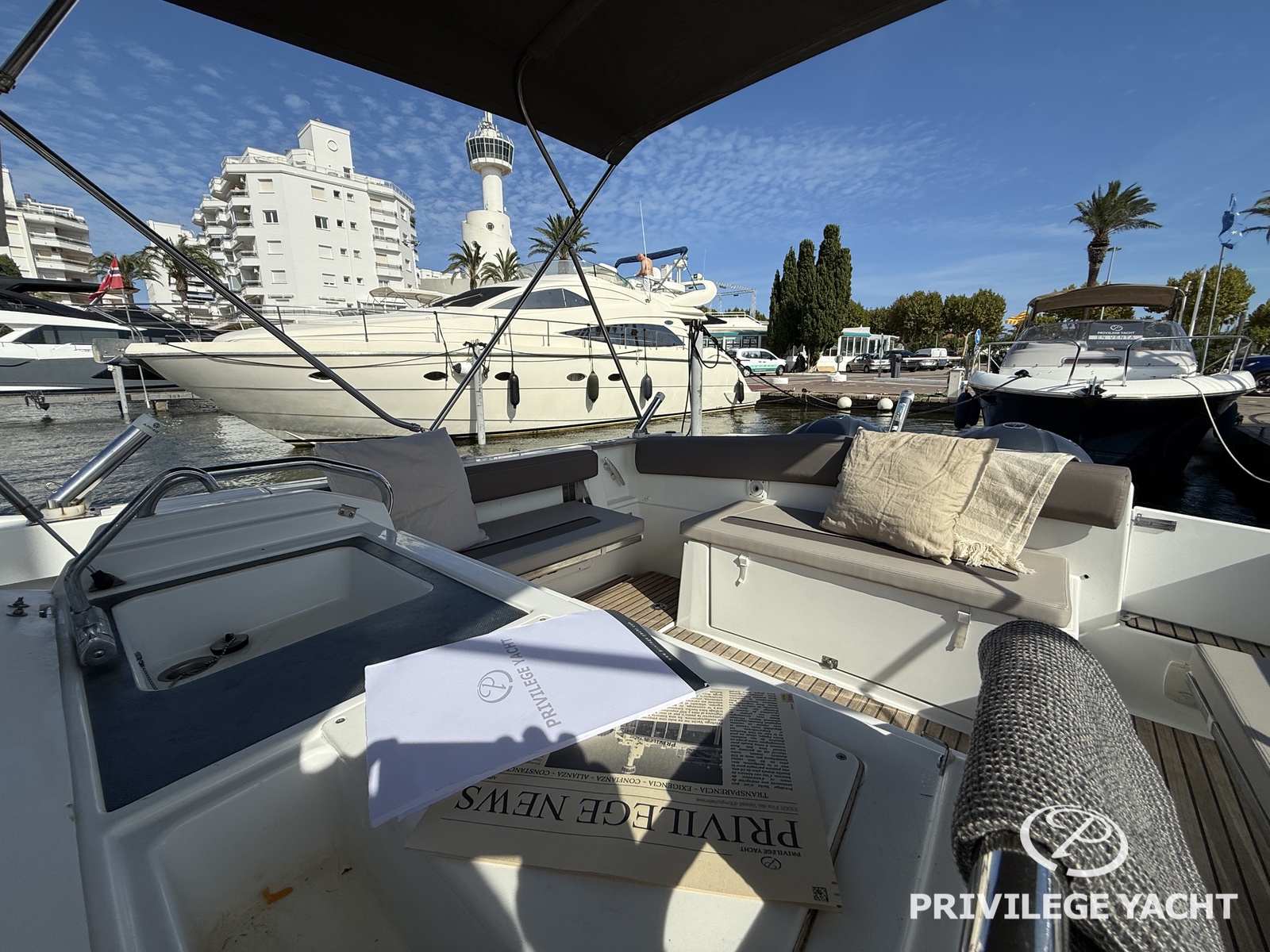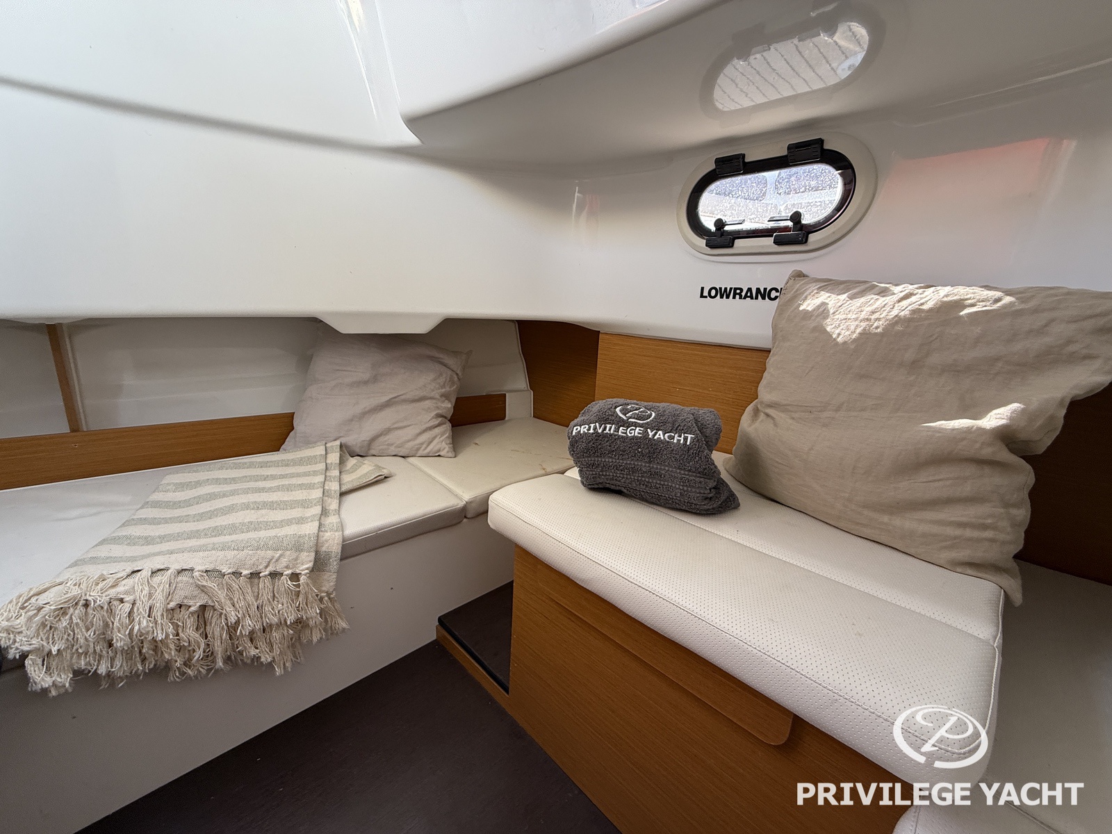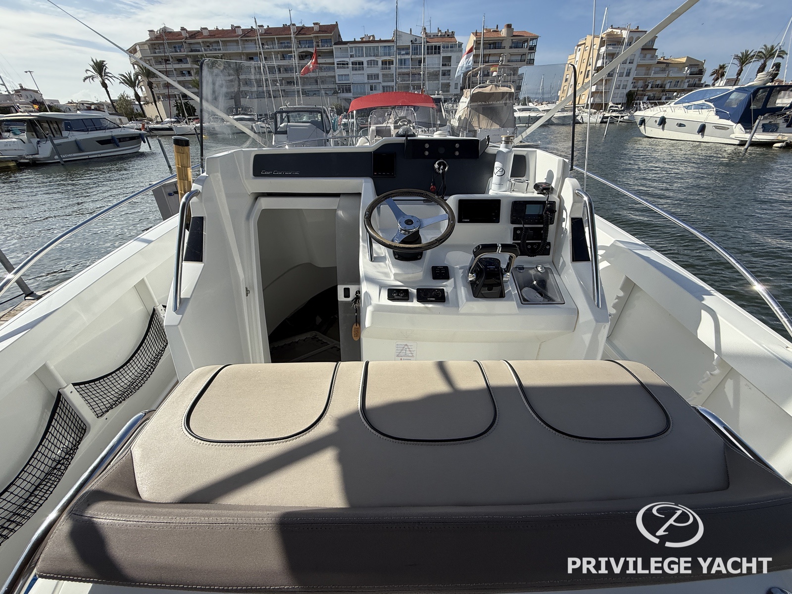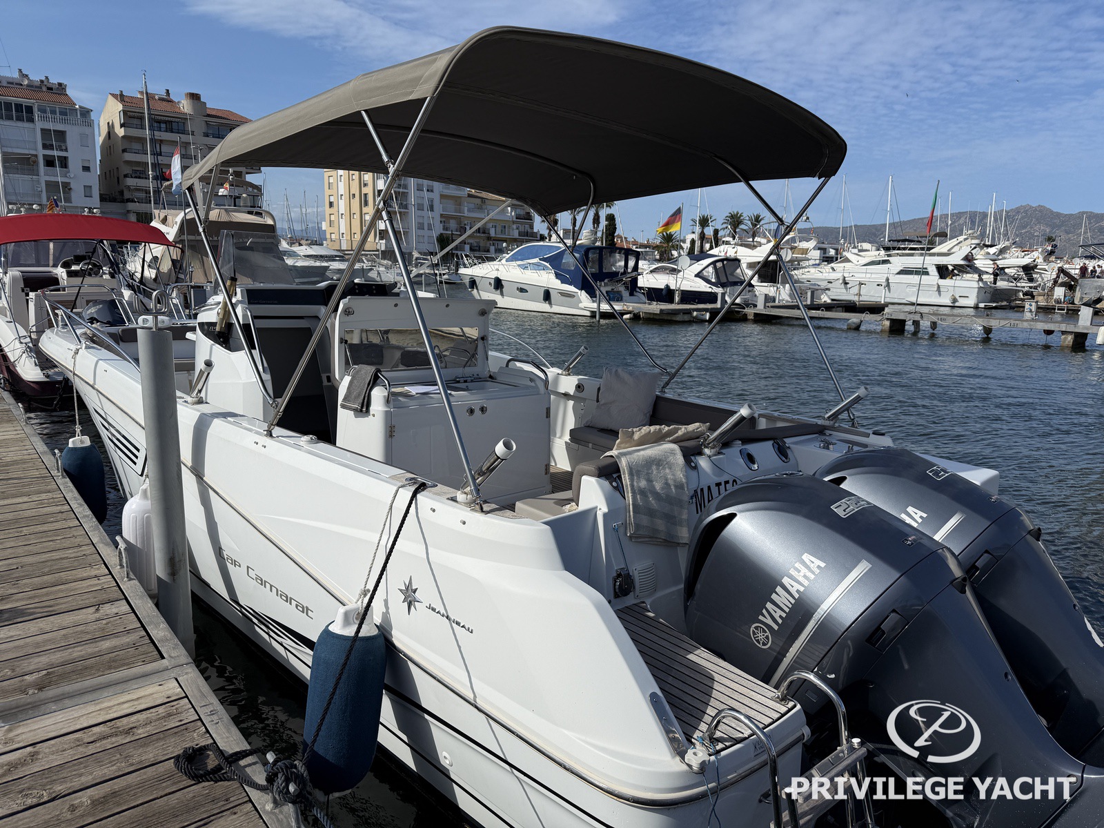 Powerful, safe, and versatile. This Jeanneau Cap Camarat 8.5 CC “MATEO” is a first-hand boat, delivered to its current owner in September 2016. Under the Spanish flag, the ITB is valid until August 28, 2026. Since then, maintenance has been carried out annually at the end of the season by the Jeanneau dealer who delivered it new. Maintenance follow-up available upon request. Its owner equipped it for fishing (which is the vessel's primary use), and the majority of engine hours were recorded at low speed (demonstrable by computer connection to the engines). A complete set of protective covers, in addition to its bimini, and a sun protection canvas on the bow. Fishing equipment can be purchased, to be discussed.